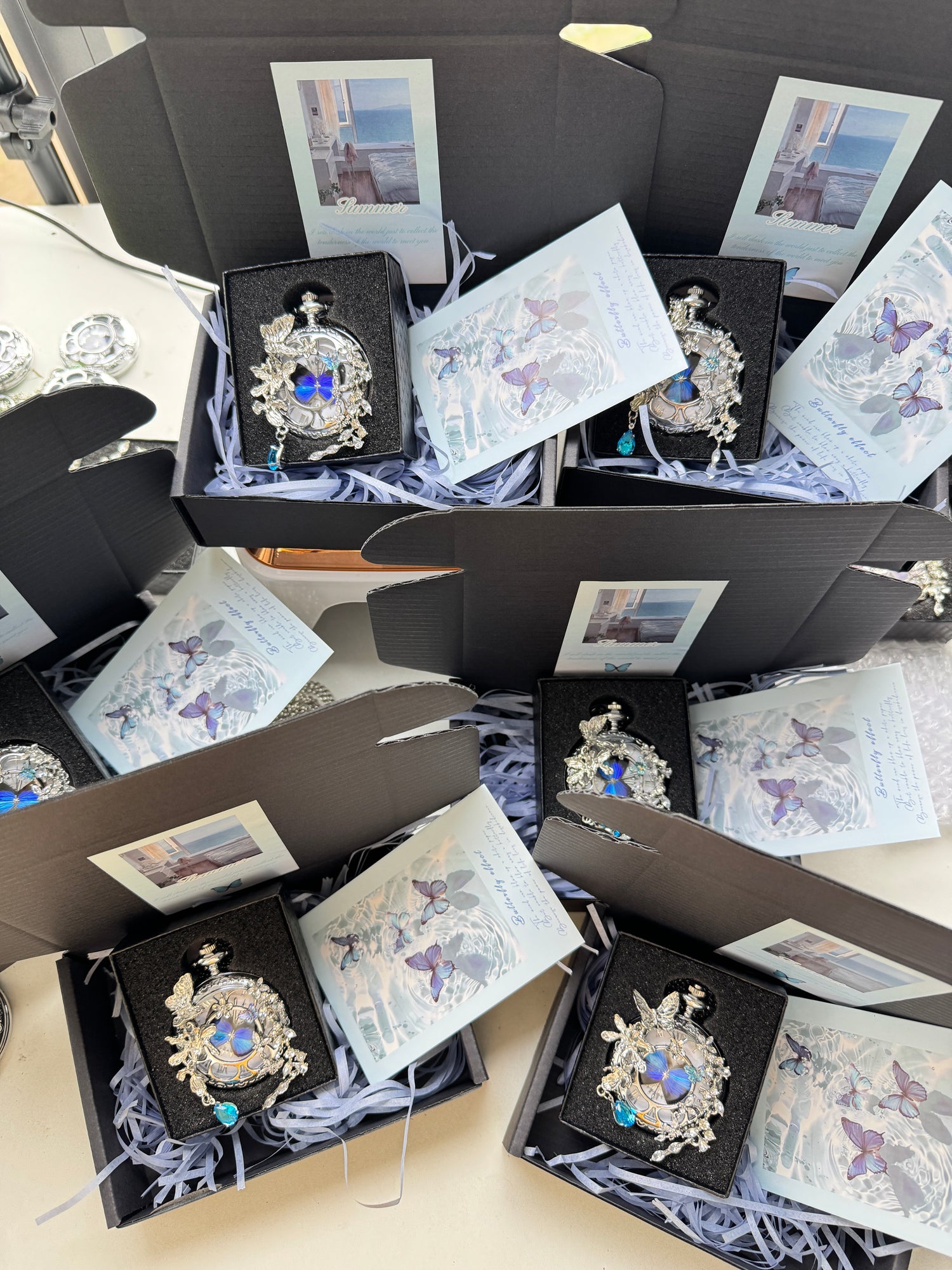 Each of our handcrafted butterfly pocket watches is more than a timepiece — it’s a symbol of eternal love, a delicate fusion of nature, art, and memory. Every real butterfly is carefully preserved by hand, capturing its beauty and spirit in glass, so its wings may never fade with time.